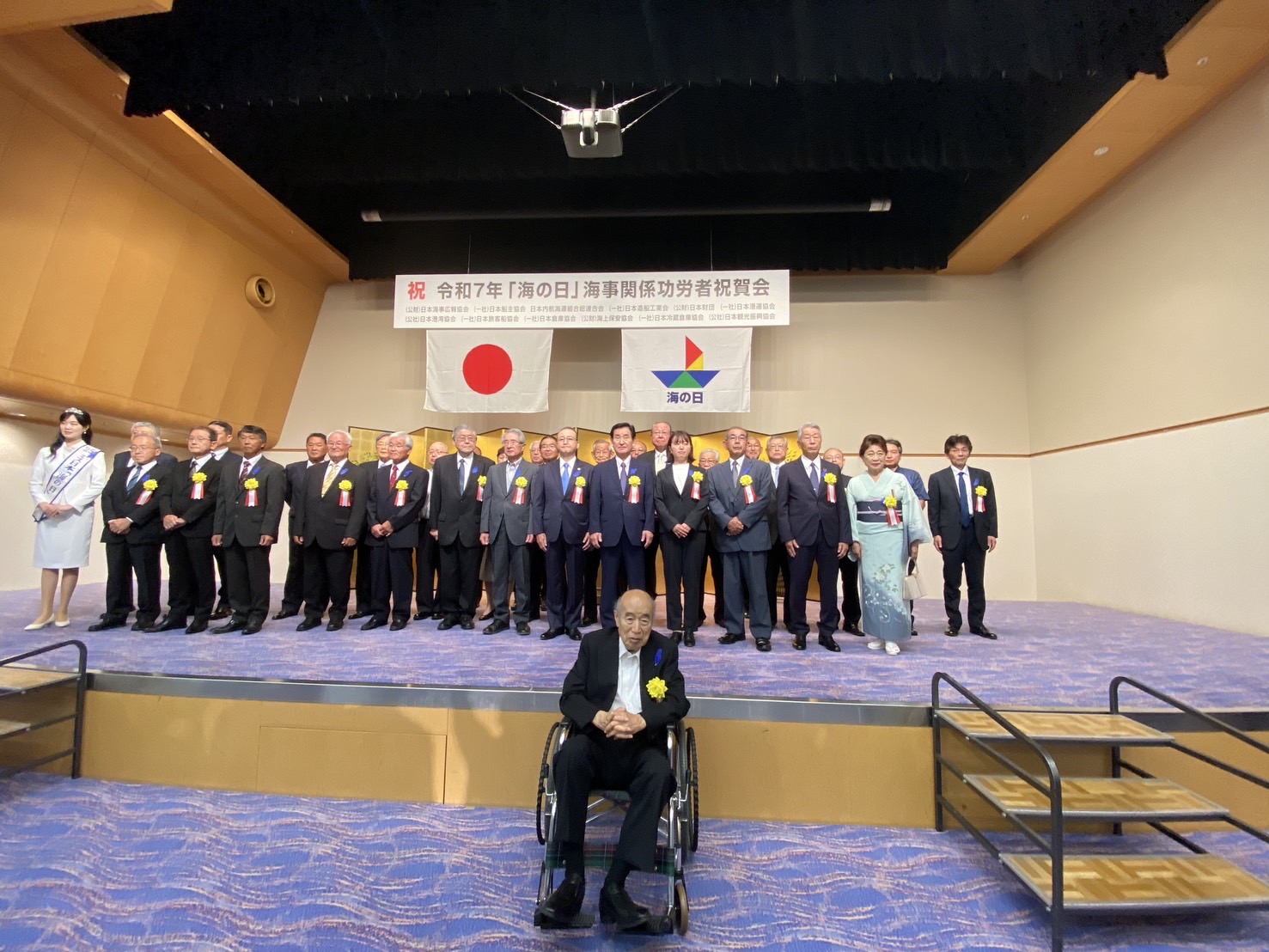 令和7年7月24日(木)に国土交通省共用会議室にて開催されました「令和7年『海の日』関係功労者大臣表彰式」において海事功労者に対する国土交通大臣表彰式が挙行されました。